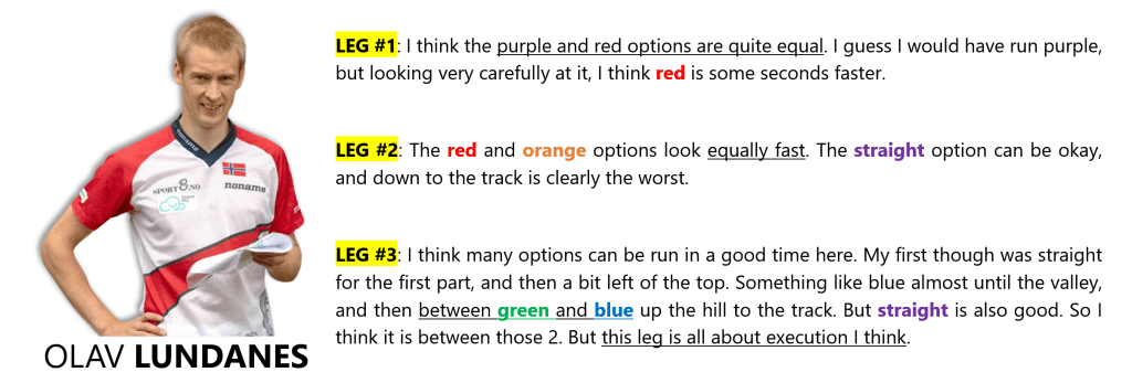 << It is quite rough to be Østfold, and compared to WOC19, for example. Especially the old Svindal Varde map, but also the slope in Leg#2. So you can gain/lose more on the technical performance, than for example other terrains such as Akselås. I think those route choices are relevant and describe the challenges in a good way. There will be time differences on the routes, but how you execute them is as important. >> concludes Olav.