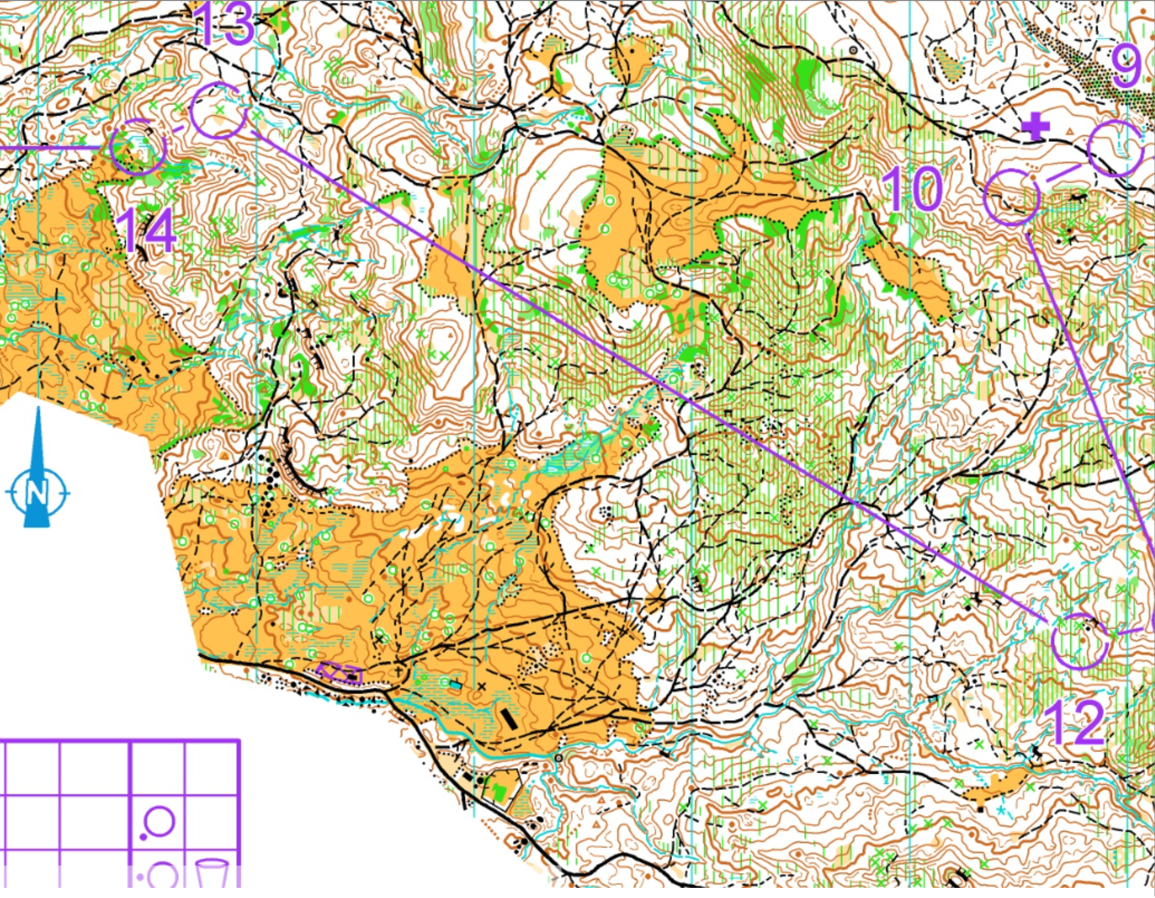 Fairly runnable leg where some sections of “rocky beds” extend below the red line, and it seems a good idea to avoid them. Using the southern paths, which practically lead you to the control, is undoubtedly the best option. There don’t seem to be any other effective options for this leg.