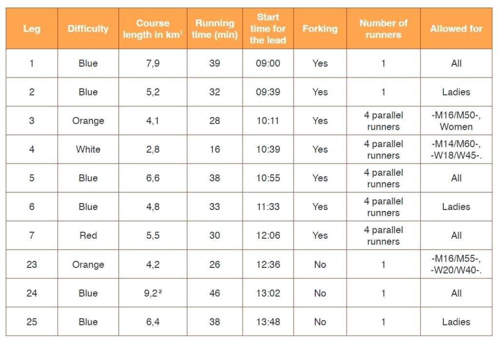 At the end of the 7th leg, after all the 4 runners finish, the runner of the 23rd leg starts for the last part of the relay where there is no more forking and only the teams which are in the leading group have a chance to get the victory. This year, the 24th leg was run mostly by Men Elite, to end up with the final leg (25th) where the Women Elite were fighting for the top places.