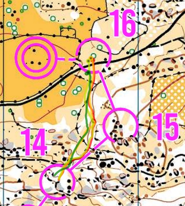 One of the most decisive legs was 10-11, where many of the runners went too far up the slope, and some of them were completely lost. Especially big was the mistake of Eduardo Gil (one of the favorites) who until control 10 was clearly in the running for a medal, but who lost more than 7 minutes in this leg.
