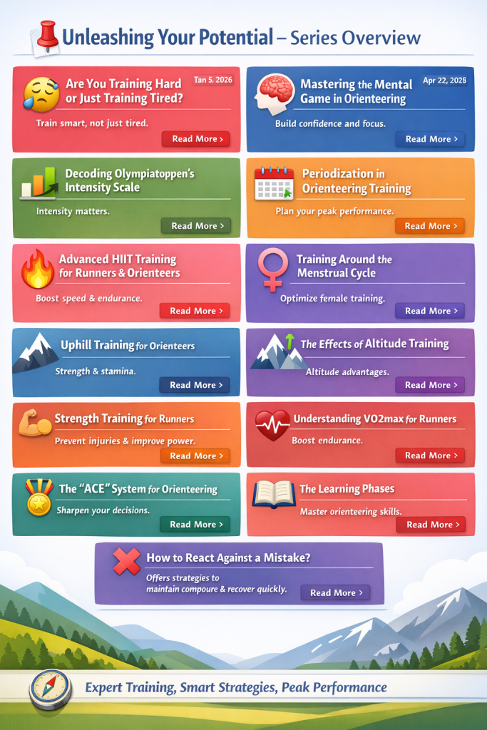 The Unleashing Your Potential series offers runners, orienteers, coaches, and athletes at every level practical, science-based insights to improve performance. It brings together key training principles, mental preparation strategies, and essential performance concepts, bridging the gap between physiology, mindset, and smart decision-making in competition.