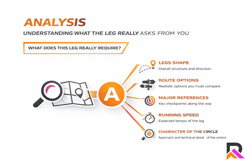 Strong analysis usually includes the same core elements: the overall shape of the leg, the realistic route options, the major references, the likely speed of running, and the character of the circle. Not every leg requires the same depth, but every leg requires clarity. The athlete must know what matters most before he commits physically to the leg.